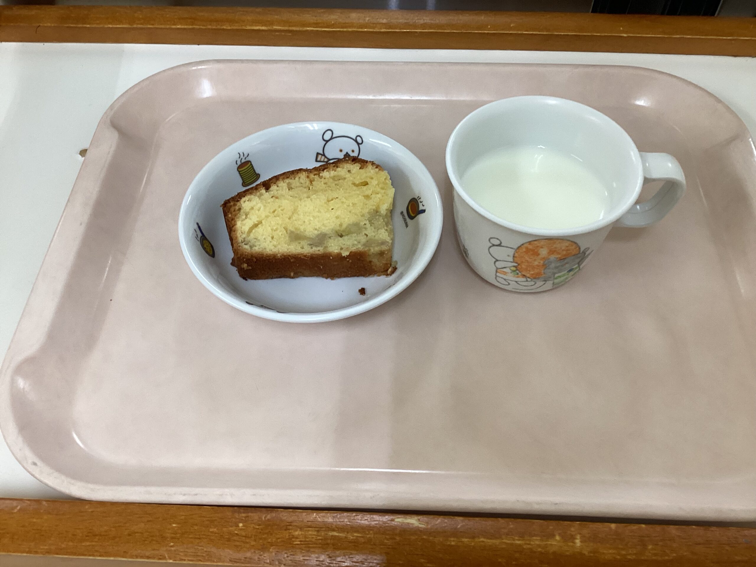 〈午後のおやつ〉バナナパウンドケーキ、ミルク。