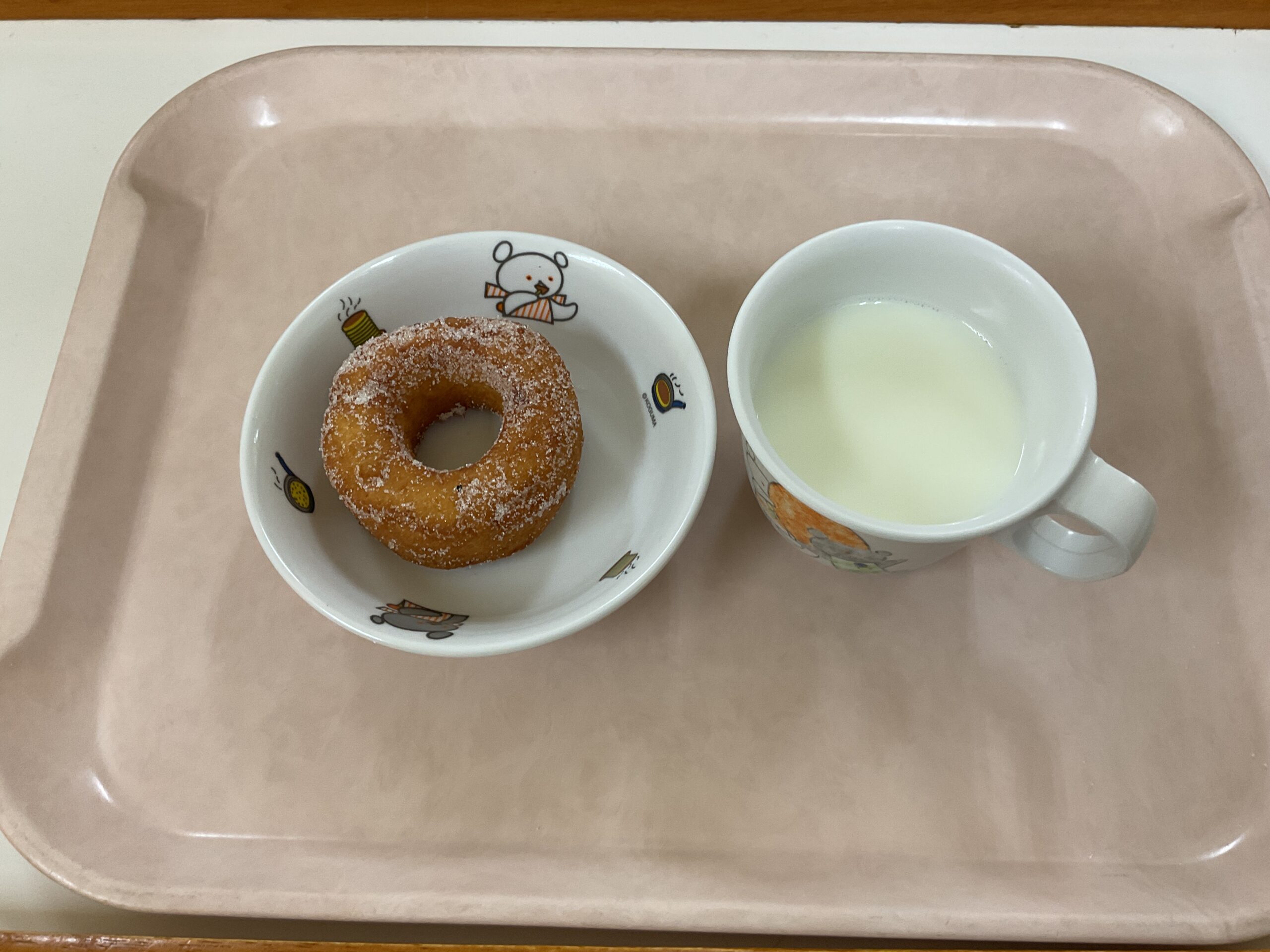 〈午後のおやつ〉おからドーナツ、ミルク。