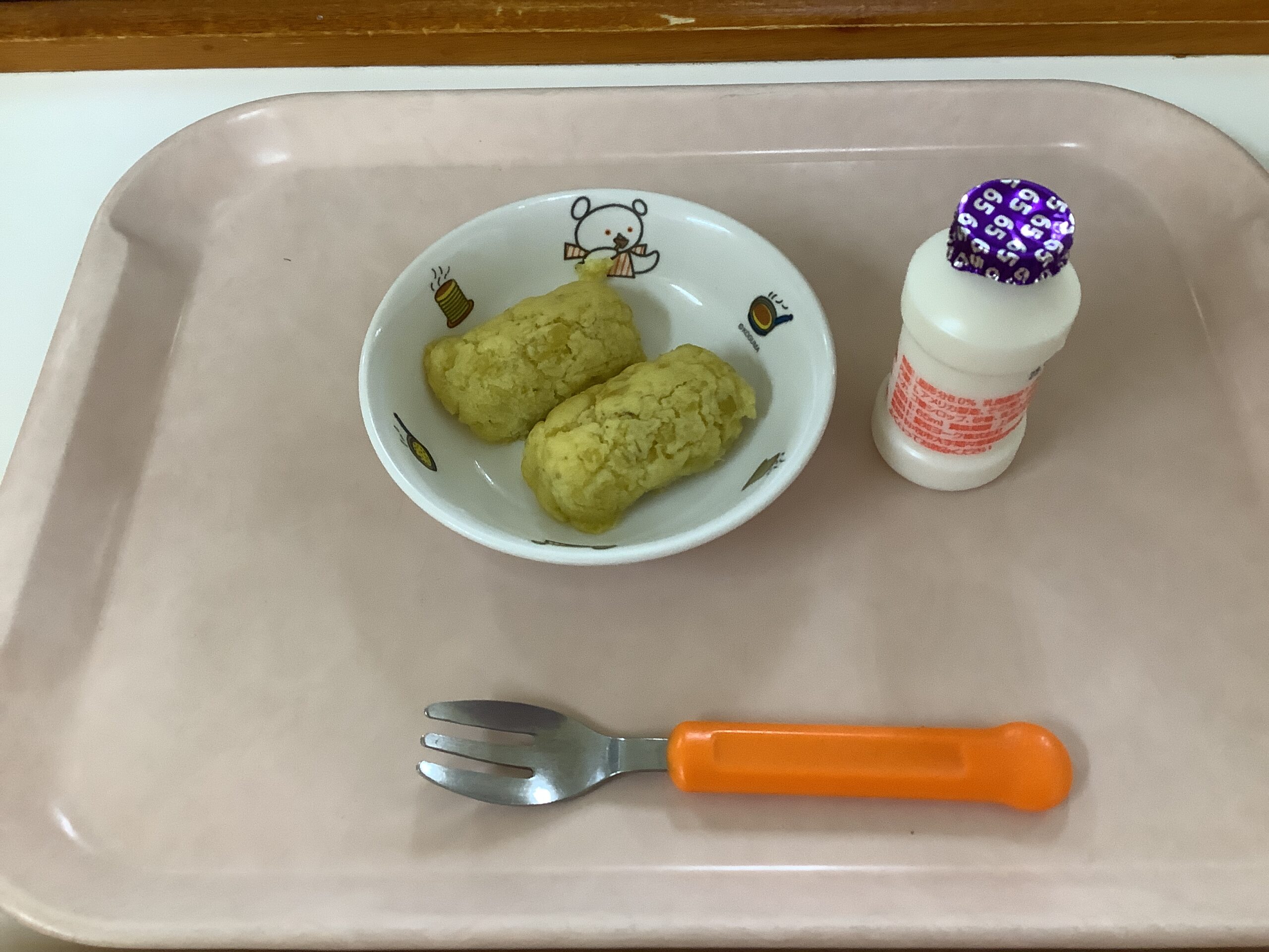 〈午後のおやつ〉スイートポテト、コアコア飲むヨーグルト。