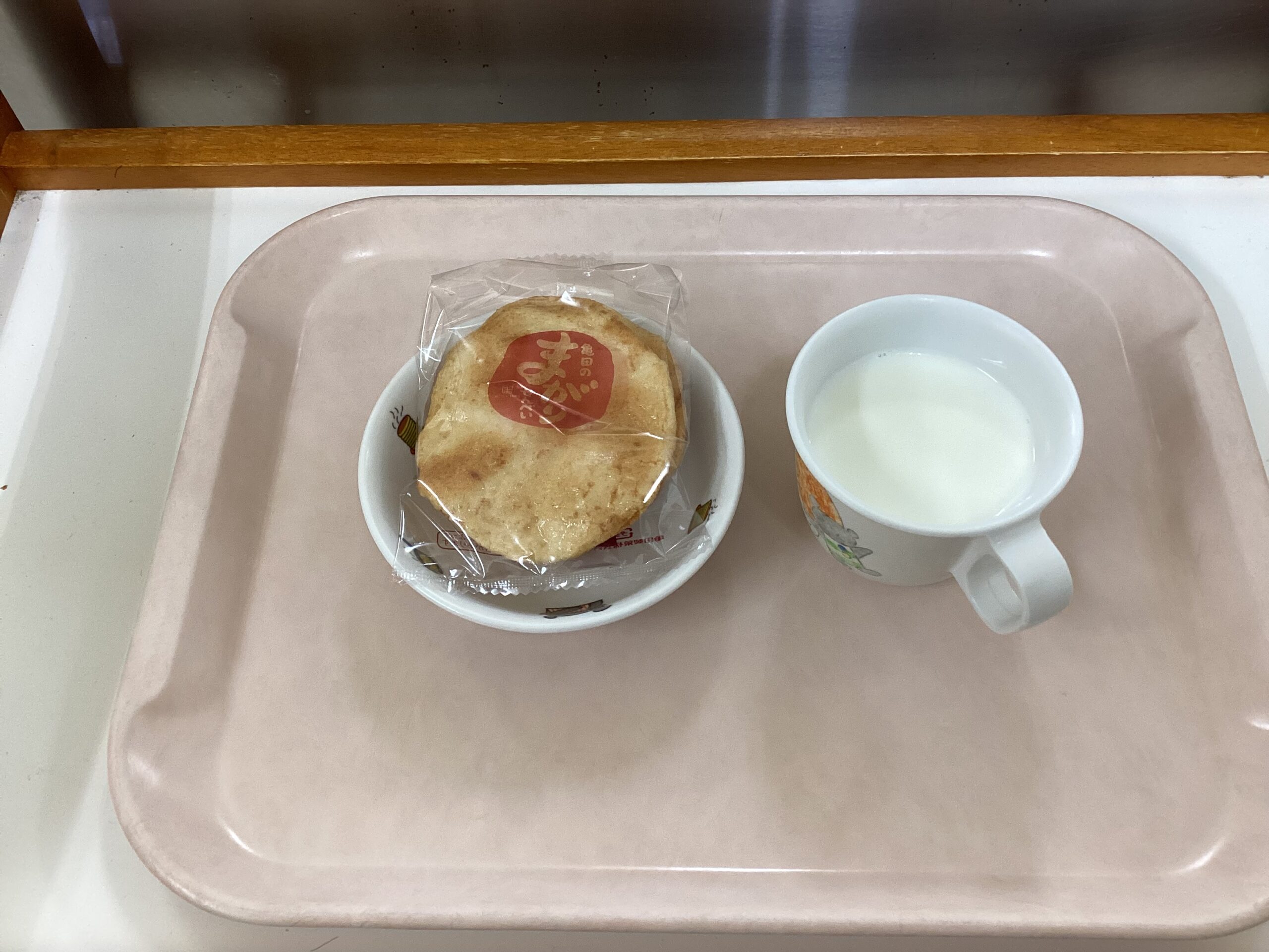 〈午後のおやつ〉まがりせんべい、ミルク。