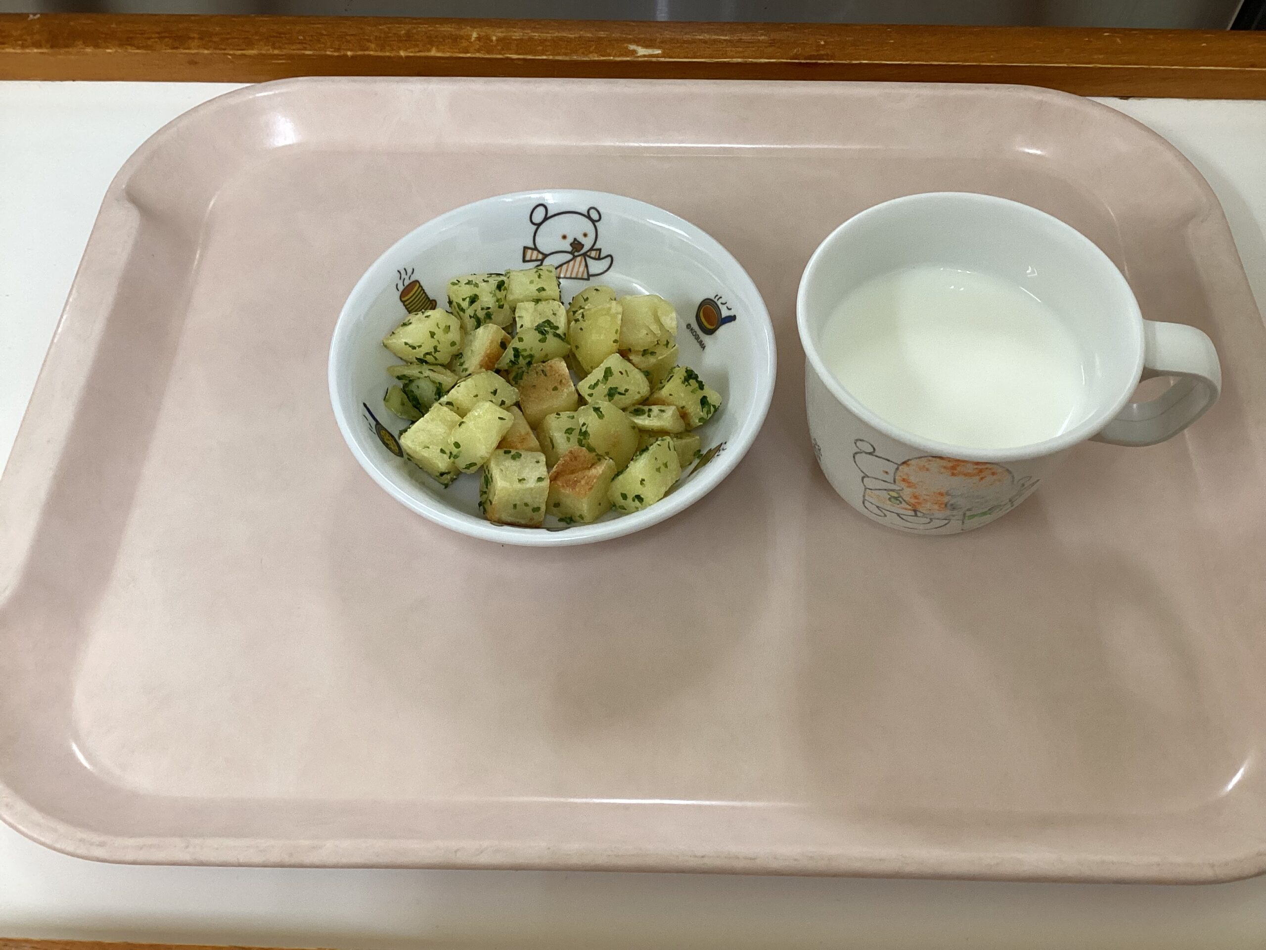 〈午後のおやつ〉のり塩ポテト、牛乳。
