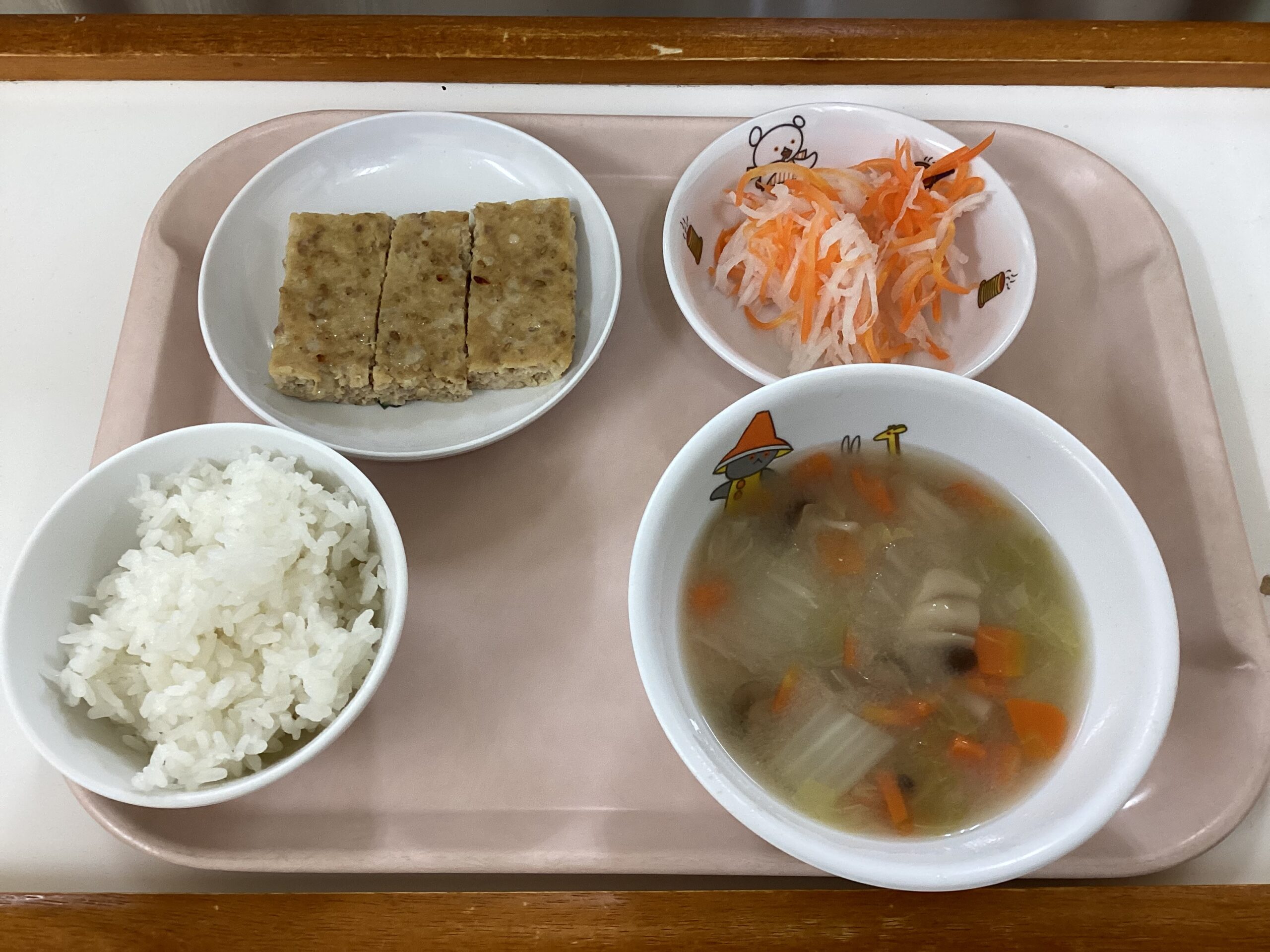 〈給食〉まつかぜ焼き、ごはん、なます、白菜のみそ汁。