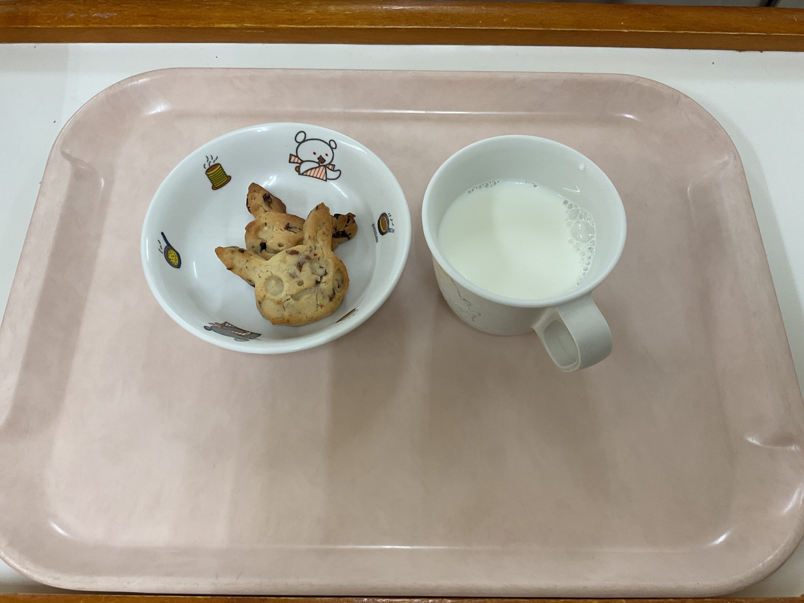 〈午後のおやつ〉レーズンクッキー、ミルク。