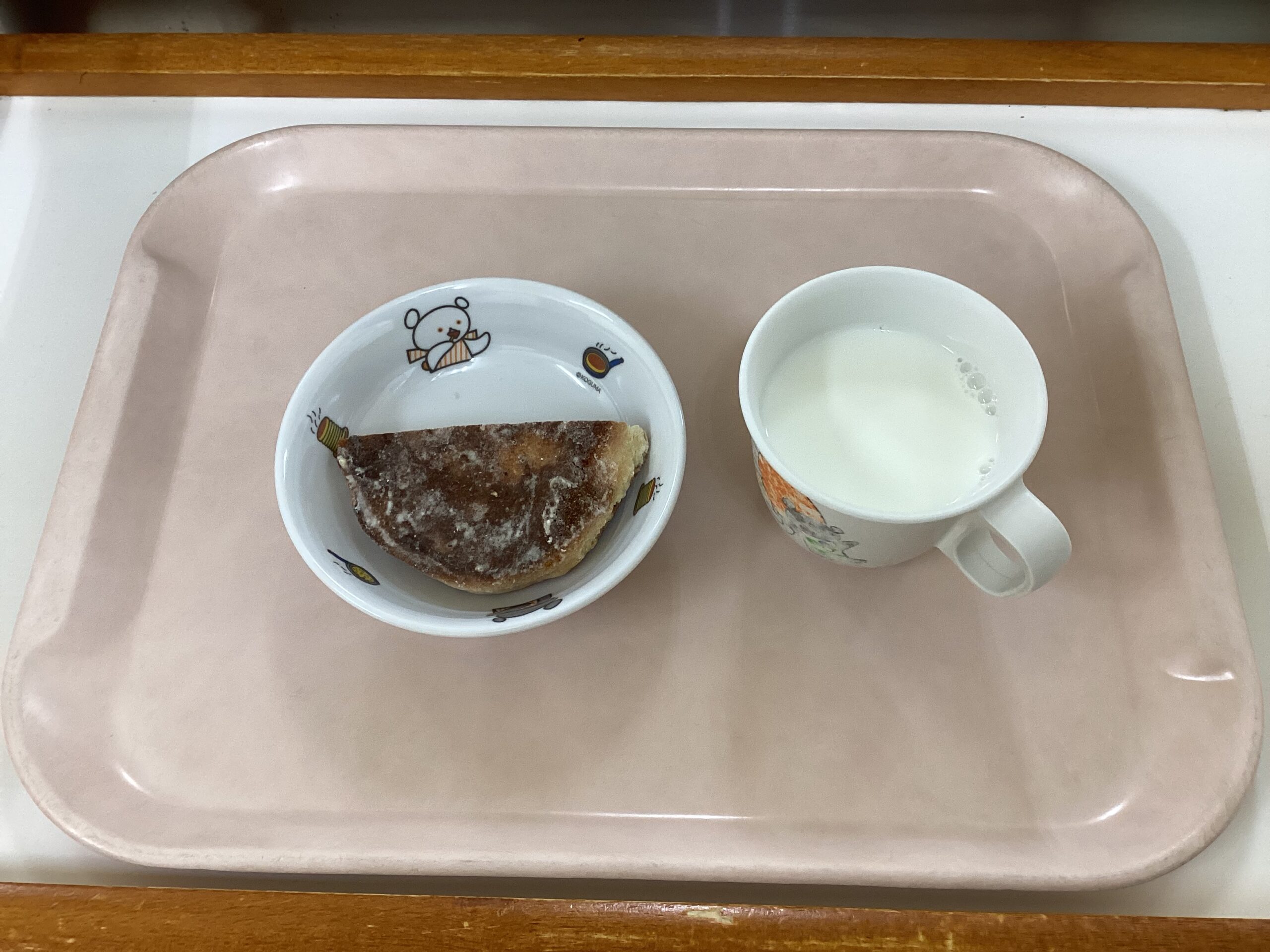 〈午後のおやつ〉ソフト紅梅、牛乳。