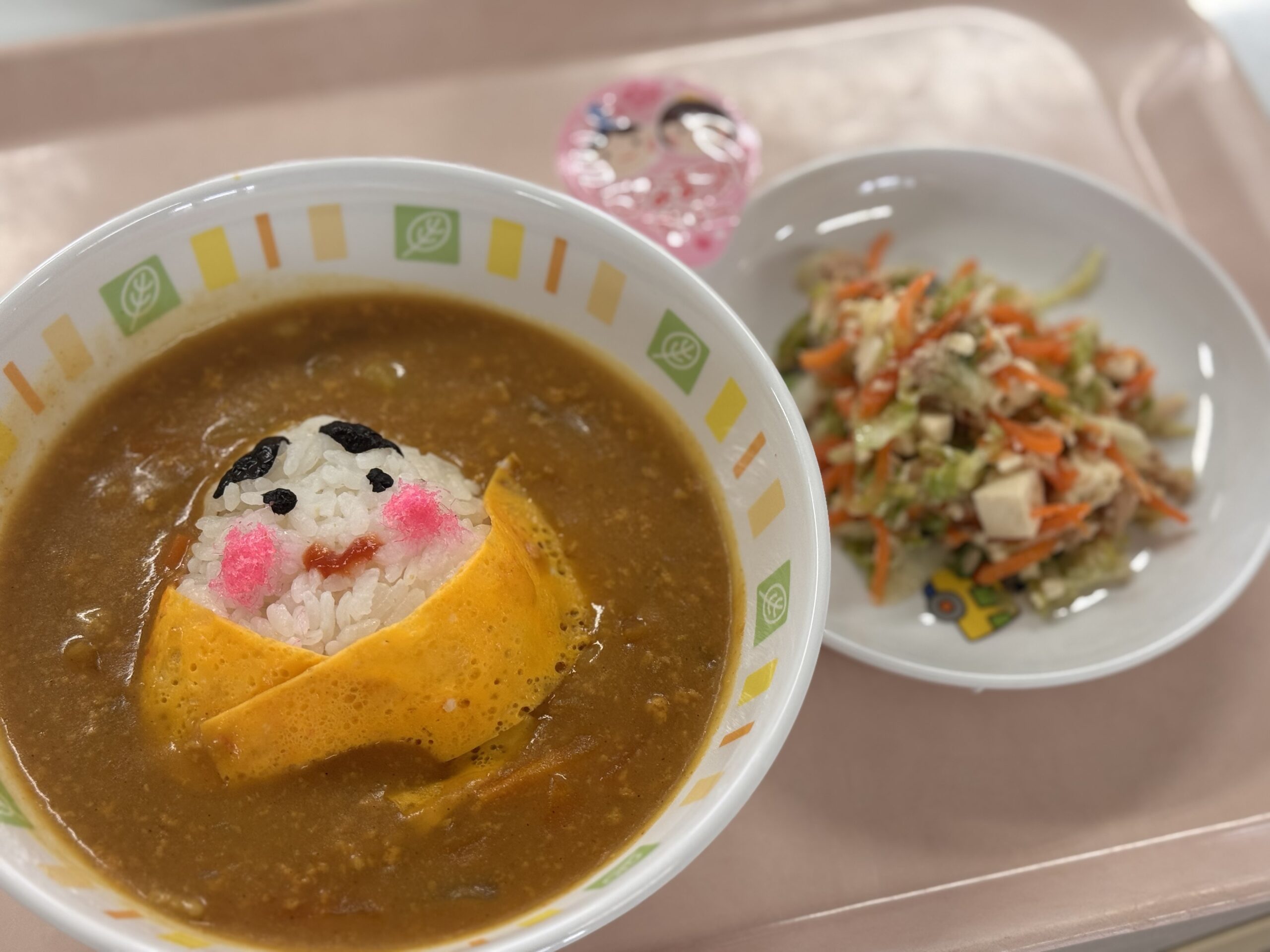 〈給食〉おひなさまカレー、豆腐入りごまみそサラダ、ひなまつりゼリー