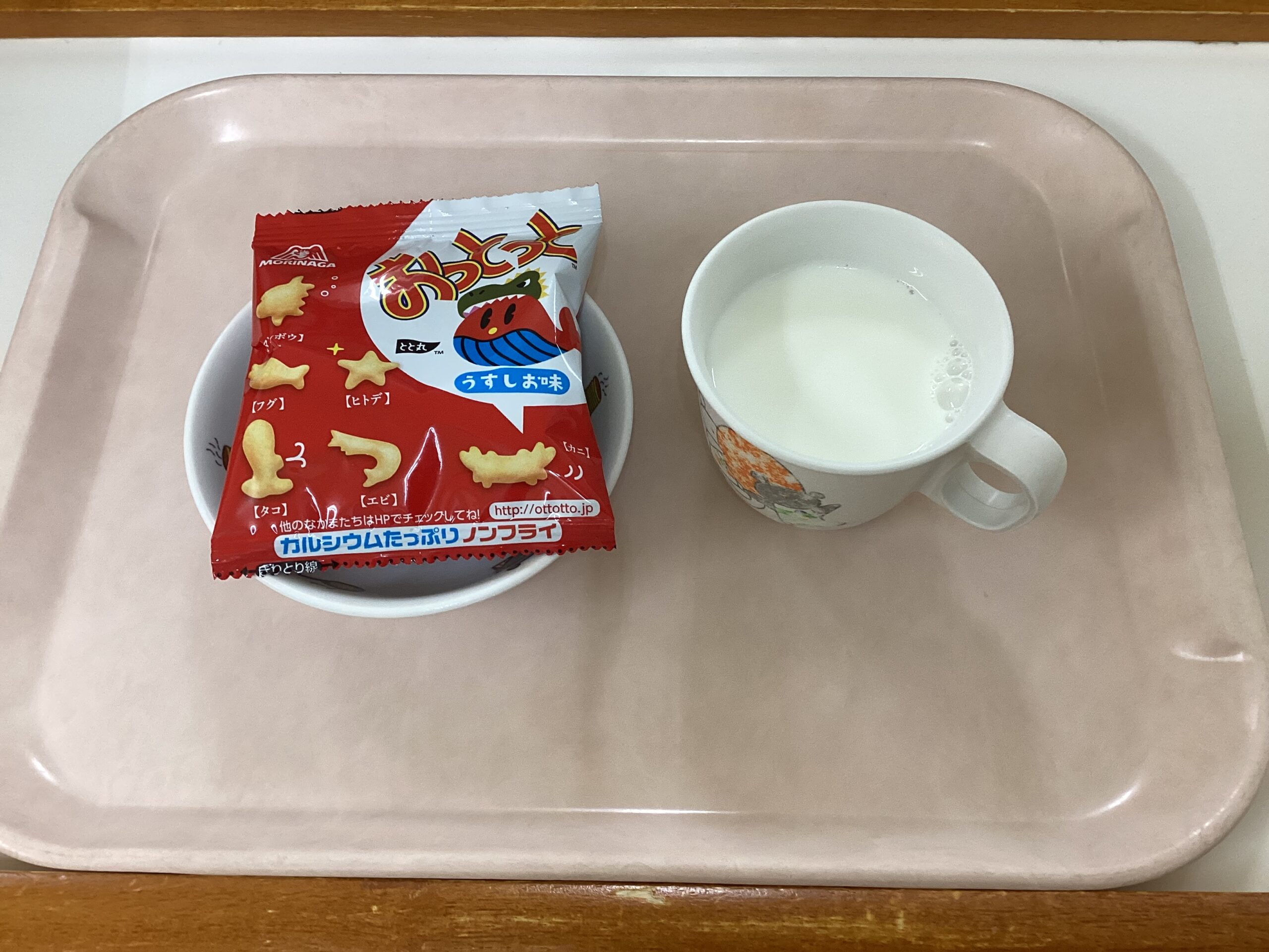 〈午後のおやつ〉おっとっと、牛乳。